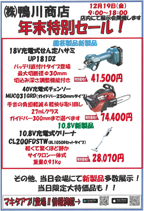 【12月13日(土)】鴨川商店×HiKOKI ミニ展示会開催!!